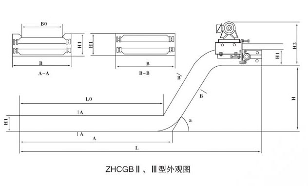 1、根據(jù)安裝空間的大小確定刮板排屑機(jī)的高度H2(≥140mm),長度L0,