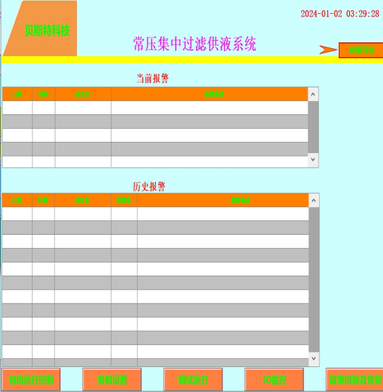 故障查詢界面可以查看當前故障報警和歷史報警,當系統(tǒng)斷電后記錄會清除